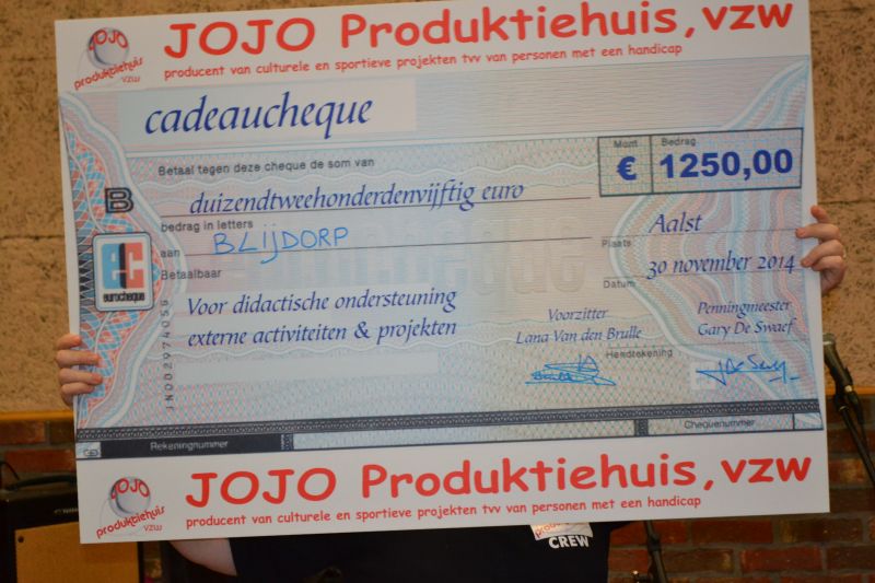 Omdat wij door omstandigheden al 2 jaar (2013 en 2014) al 2 jaar geen projecten hebben kunnen realiseren/organiseren hebben wij dit jaar beslist om een schenking te doen aan de 3 voorzieningen die jaar na jaar de samenwerking met ons aangaan. Op onze 5de geschenk- en kerstmarkt zal onze peter Anton Coghen (Commissaris Migrain uit Mega Mindy) uit onze naam aan Blijdorp, Levensvreugde en Zonnelied een cheque ter waarde van 1250 euro schenken.